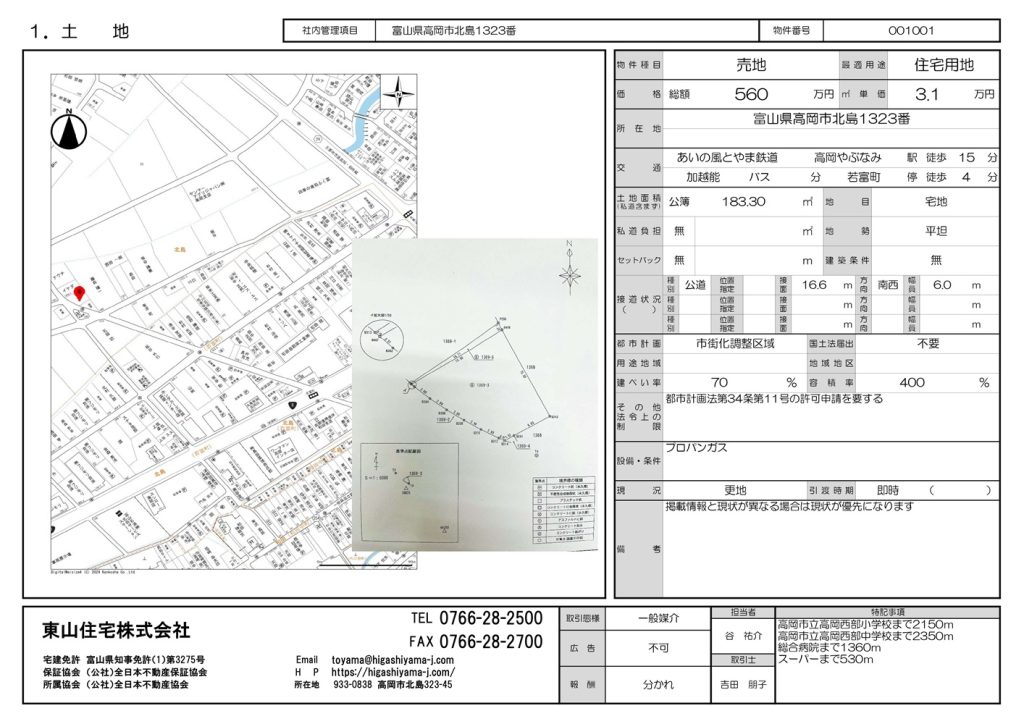 2026.01.16 お知らせ 住宅用地のご案内 住宅用地のご案内 高岡市北島、やぶなみ駅まで徒歩15分、バス停まで徒歩4分の好立地! 日当たりも良く単世帯の新築にちょうど良い約55坪。新築を検討中の方におススメです! 詳しくは東山住宅までお問合せください。